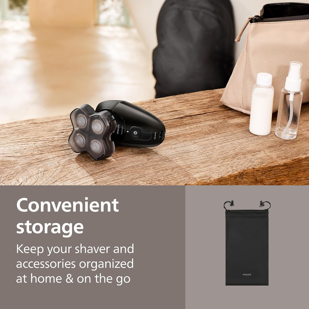 - The set includes: 1x Philips Norelco Head Shaver Pro 5000 Series, 1x protective cap, 1x soft pouch, 1x cleaning brush, 1x USB-A cable (power adaptor not included)