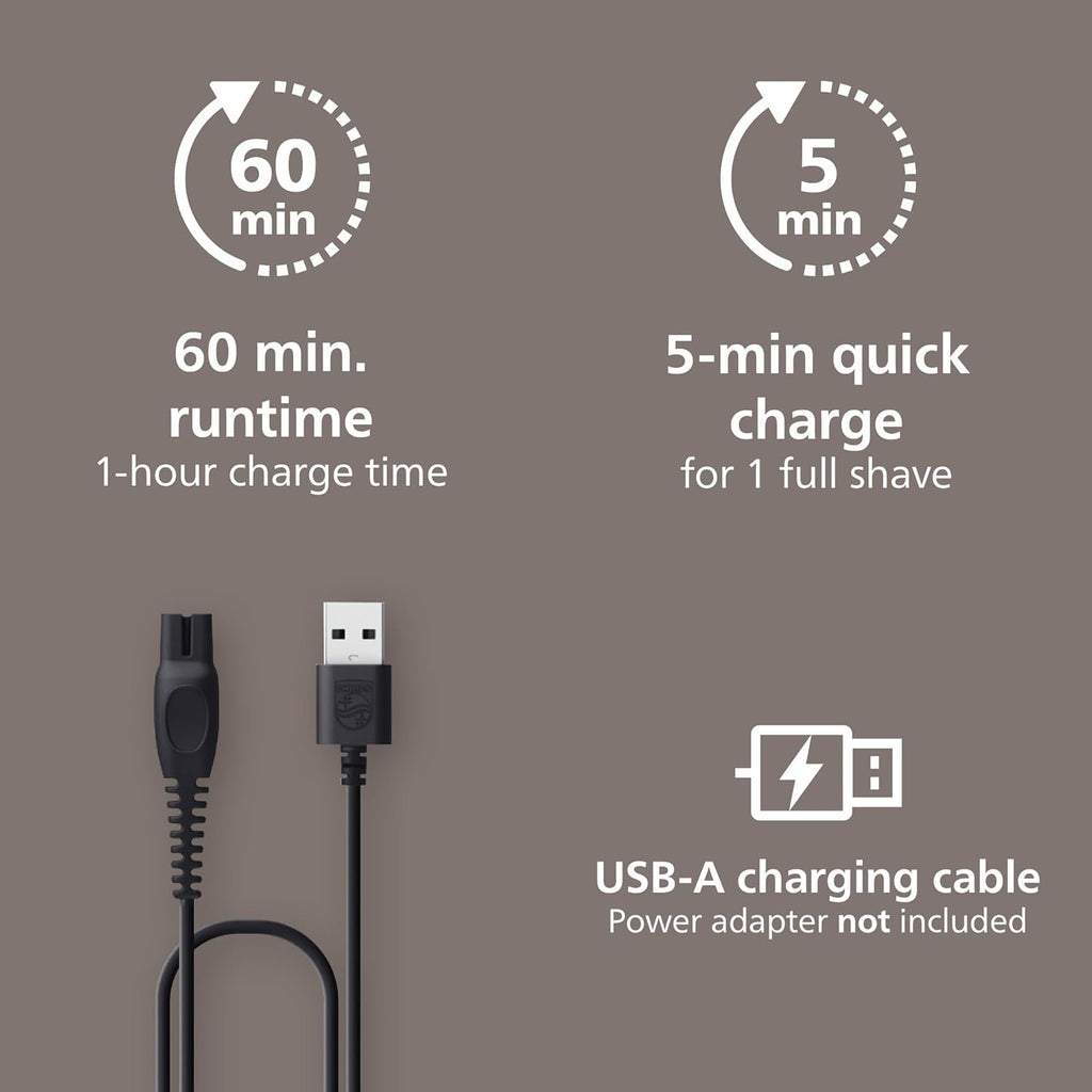 - Fast and easy: 60 minutes of cordless shaving on a 1-hour charge, 5-minute quick charge for 1 full shave; IPX7 water-resistant, hair collection system, travel lock to ensure safe storage and travel